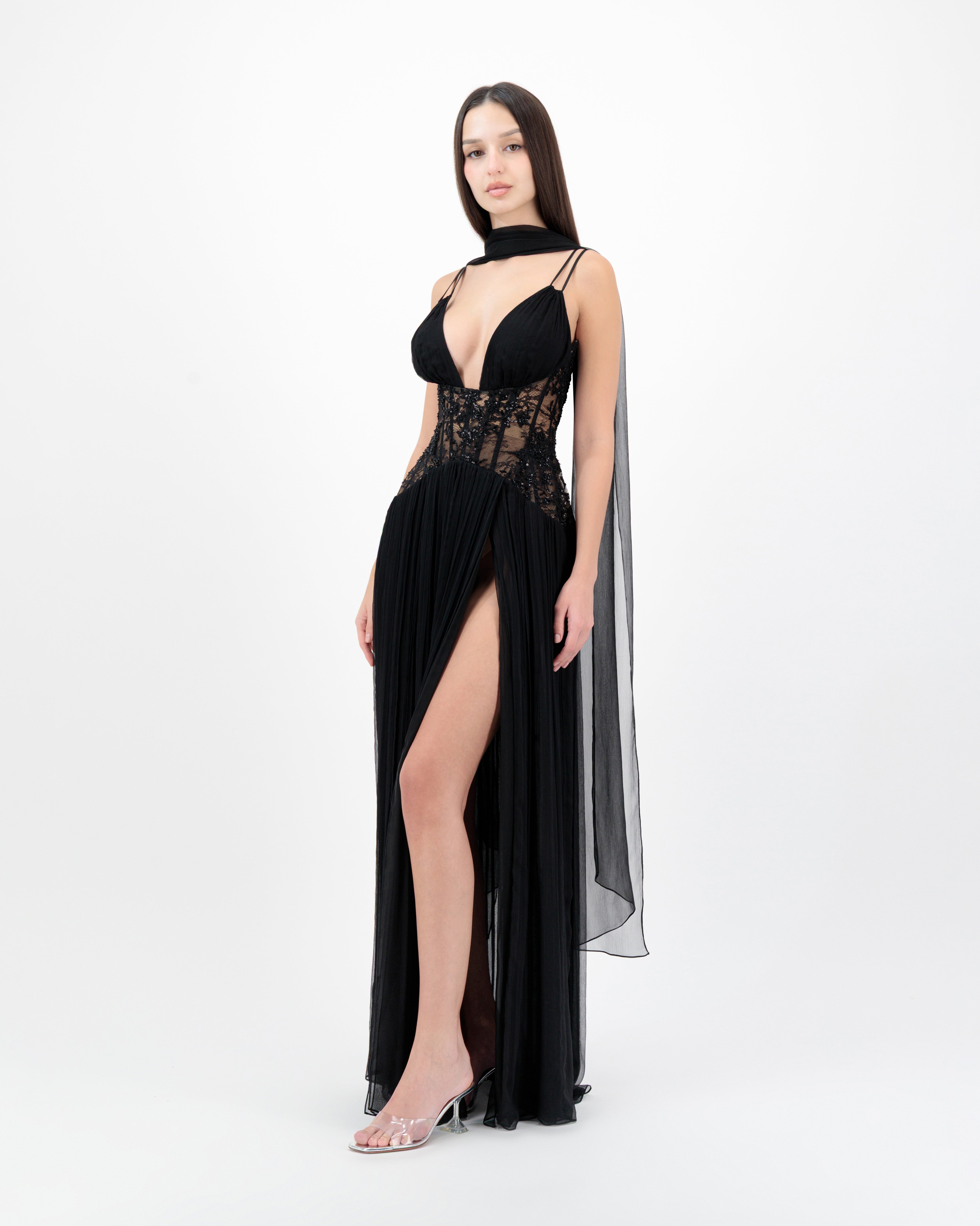 Aphrodite Silk Gown. Black